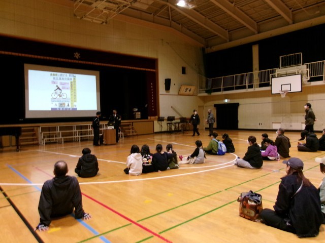 3連休の中日、大隅東の地域の皆さんが「みんなで学ぼう会」を企画実施してくださいました。児童と地域の皆さんが一緒に警察署の方による「交通安全講習」を受講したのち、子どもたちは運動場にて安全な自転車の乗り方に