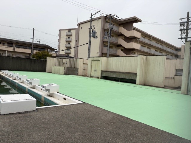 ここ数年、初夏から尋常でない暑さに見舞われていることから、水泳授業の際の熱中症対策として、コンクリート部分に遮熱塗装を施すことにしました。今週、プールサイドの一部を塗装いたしましたので、お知らせいたします。今後、塗装の範囲を広げてまいります。