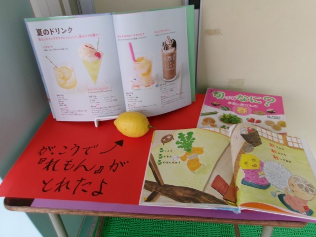 うれしくて「レモン」が載っている本を学校の図書館から借りていっしょにかざっています。