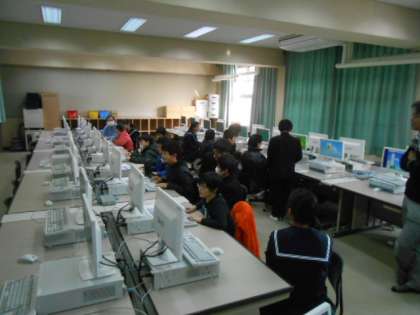 大隅西小学校の児童と一緒に参加し交流もしました。授業は、1組が社会科を2組が英語を体験しました。 -