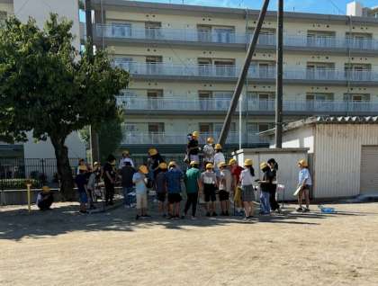 2学年ごとでの団体競技です。低学年は「玉入れ」、中学年は「台風の目(ぐるぐるハリケーン)」、高学年は「ミニつなひき」に取り組みました。 -