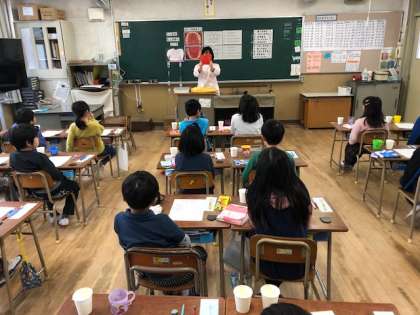 2年生が、本校栄養教諭による「食に関する指導」の授業で、「からだによいのみものをえらぼう」の学習をしました。飲み物に入っている砂糖の量が、思っていた以上の量に子どもたちは、驚いていました。