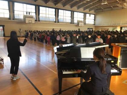 最後に校歌を斉唱して終業式を終わりました。 -