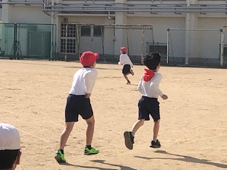 生活科の学習で作った凧を、2・3時間目に河川敷であげました。さえぎる物が何もない河川敷で思い切り走りながらあげていました。最初はどうしてあげるかわからない子もたくさんいましたが、少しずつコツをつかみながら、あげれるようになってきました。河川敷に子ども達の歓声が響いたいました。