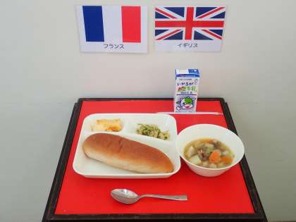 今日の給食には、ポトフと焼きプリンが登場しました。