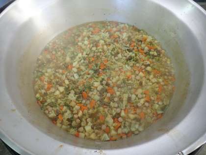 煮こんだ肉と野菜をスープと一緒に食べます。