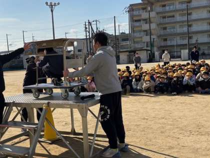 地域の皆さんが子どもたちのために企画してくれたイベントです。晴天に恵まれ、たくさんの子どもたちが参加してくれました。耐寒マラソン、ゲームコーナー、ものづくりブース、そして消防署の方たちによる体験コーナーなどなど。