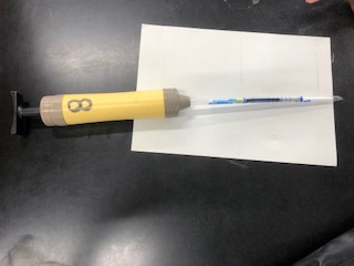 吸う空気(周りの空気)とはき出した息をそれぞれビニール袋に閉じ込めて、気体検知管(写真3枚目)という器具を使って、酸素と二酸化炭素の割合を調べていきます。