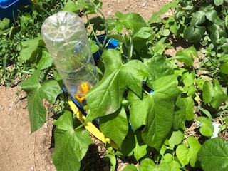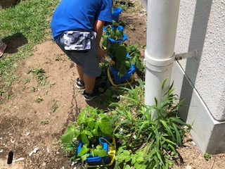 5年生の総合の学習で育てているバケツ稲も、土が乾いて水をほしがっています。