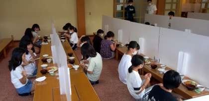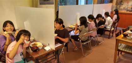 ハンバーグランチです 感染対策もしっかりとしていただいてます 全員元気に過ごしています この後キャンプファイヤーも予定通りできそうです
