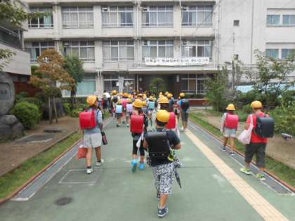 今朝は、久しぶりの青空のもとで、児童たちが元気に集団登校してきました。1時間目は、運動会全体練習の最終回で、閉会式と応援の練習をしました。