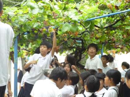 先日、アップした6年生が「ブドウ狩り」を行っていました。