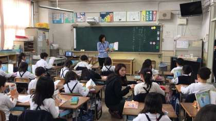 「正直な心『金のおの』」という題材でしたが、各学級の担任がいろいろ工夫して子どもたちの興味関心を高め、ねらいに迫っていきました。