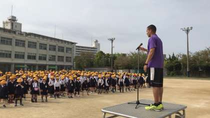 4月22日(月)、急に暑くなった週始まりです。今年度、2回目の朝会ということで並ぶのに少し時間がかかりましたが、きちんと並ぶことができました。