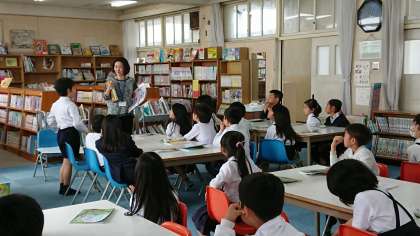今日は、酒井さんをゲストティーチャーとして、3年生がクラスごとに、「図書館へようこそ」の学習をしました。図書室の本の並び方や使い方の約束について、紙芝居やクイズで学習しました。みんな、とてもよく分かっていました。「本のなかまわけ」の10種類を知り、探したい本は何番の棚へ行けばよいか、同じような本でも内容によって違う棚にある、というようなことを教えていただきました。