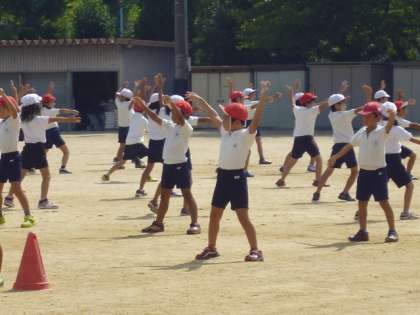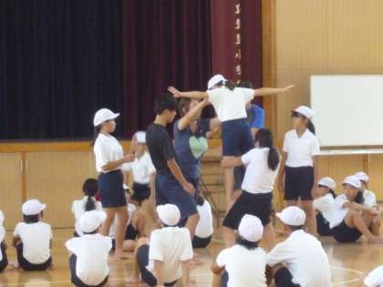 (上)3年生の団体演技      (下)6年生の団体演技「組み体操」