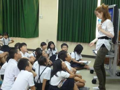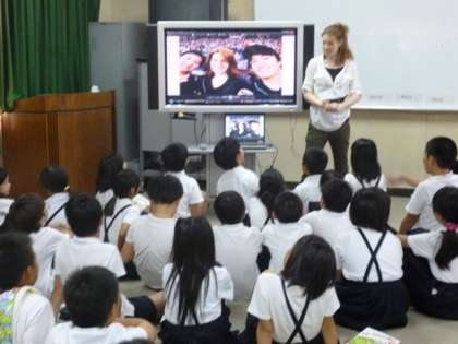 自己紹介を交え、アニー先生が家族のことや旅行のことを、映像を映しながらゆっくりとした英語で話してくれます。