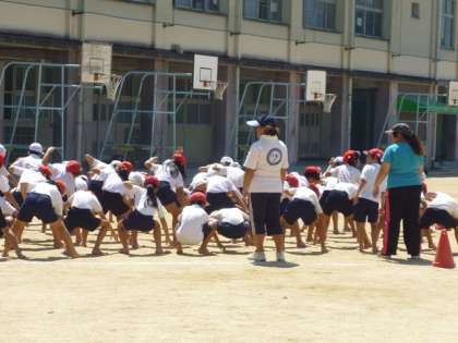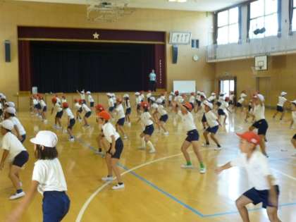 (下)運動場から祭り拍子。4年生の団体演技「阿波踊り」