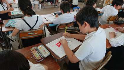 今日は、分度器を使って、角や三角形をかく学習でした。できた喜び、もう少しだったくやしさ、様々でしたが、みんながんばって取り組んでいました。
