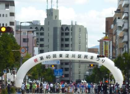 会場となった区役所前の道路はたくさんの人で賑わいました。