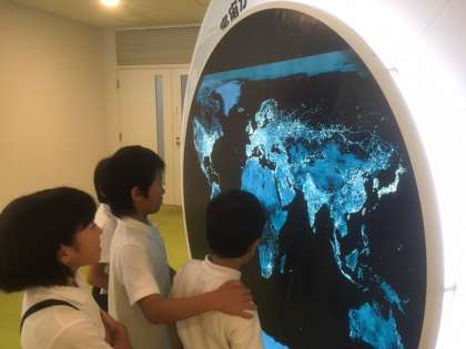 展示室では、オゾン層が破壊されて北極の氷が小さくなっていることや