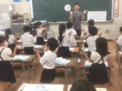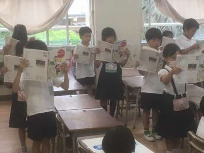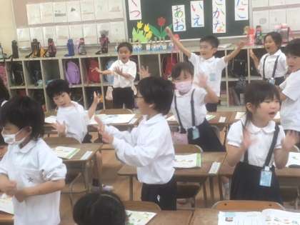 5時間目に1年1組の教室から元気な歌声が聞こえてきました。