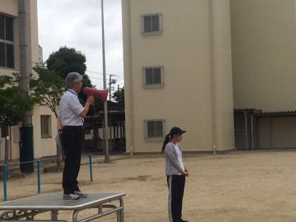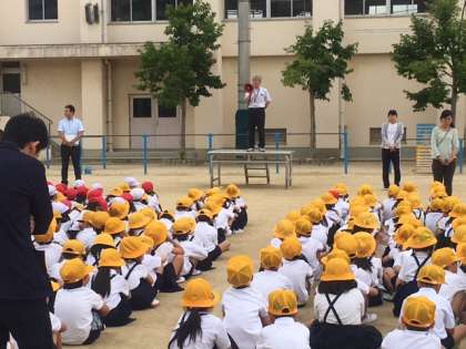 6月10日(月)、3時間目、給食室から出火という想定で避難訓練がおこなわれました。どの学年も、落ち着いて静かに避難していました。担当の世良先生や校長先生の話もしっかり聞くことができていました。