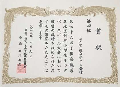 結果は、8チーム中4位で賞状をいただいてきました。よかったね。よくがんばりました。