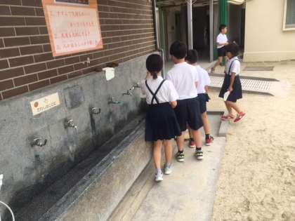 4年生は、社会科で水の学習をしています。水がどのようにしてつくられ、どのようにしてわたしたちにとどいてくるのかを学習します。今日は、豊里小学校には、どのくらいの数の水道の蛇口があるのかをグループで調べていました。豊里小学校の校舎配置図を持ちながらその数を記入していました。さあ、いくつあるんですかね?