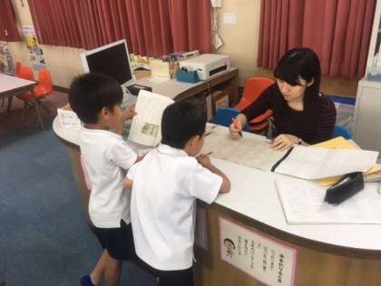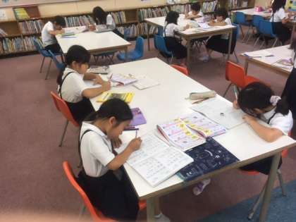放課後、さっそく2年生がやってきました。ランドセルを置いて座席にすわり、宿題をやり始めました。計算ドリルや漢字ドリルを始める子、音読を聞いてもらっている子など自分のペースでやっています。早く終わった子は、補充プリントをしたり読書をしたりしていました。