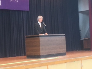 集会では、校長先生から「豊里小学校を通してできたたくさんの人とのつながりを大切にしましょう。」という話がありました。その後、記念品目録の贈呈がありました。記念品は、賞状やトロフィーなどを入れるガラスケースなどです。このガラスケースは、児童ががんばって表彰されたりメダルなどをもらったりしたら、1週間ほど飾っていきたいと思います。