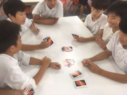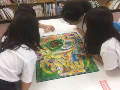 最後に、ゲームクラブの様子です。このクラブは、数人で楽しく遊べるゲームをしています。将棋やUNO、人生ゲームなどをしていました。おうちに帰ればテレビゲームをしている子たちも、みんなで楽しく遊べるトランプやボードゲームに熱中していました。
