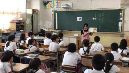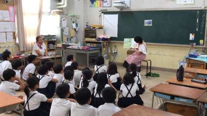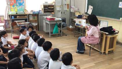 水曜日の朝は読書タイム。今日は2年生に絵本ばたけの方の読み聞かせです。
