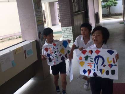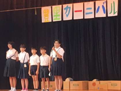 7月4日(木)、今日は、みんなが楽しみにしていた「ザ・豊里カーニバル」の日です。各学級それぞれ、協力して遊びのお店を開いていました。受付、遊び方の説明、お店の宣伝など、自分の役割をしっかり果たしていました。縦割り班でお店を回っていくのですが、高学年の児童が、低学年の児童をしっかりと見守っていました。迷子がいても、すぐに職員室へ迎えに来てくれて、責任ある行動をとっていました。みんな立派でした。