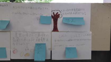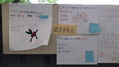 驚くほどたくさんの種類の樹があったので、全校児童にも興味をもってもらうため、クイズを作成しました。