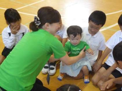 一度も、赤ちゃんと触れたことのない児童は、おっかなびっくり。