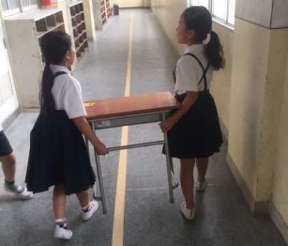 今日の3時間目に、4年生の教室の引っ越し作業をおこないました。2人1組で机を運びました。また、いすや自分の荷物など何往復もしながら一生懸命に運びました。今まで使っていた教室と違っているので、なんだか不思議な気がしますね。