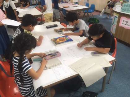 今日は、第2回自由研究講座が図書室で行われました。前回決めたテーマに沿って、各自、調べていきました。自由研究がだんだんと、形になりつつあります。まだ、完成していない児童がほとんどですが、夏休みはまだまだ残っているので、なっとくするまでじっくり調べてください。