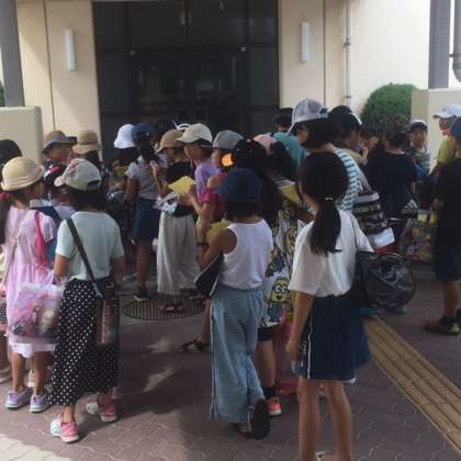 今日も朝からいい天気です。気温もどんどん上がってきていて、プール日和です。プールの受付もいつものように大賑わいです。高学年は、5年生が林間学習の事前指導のため、6年生だけの貸し切り状態です。いつもより広々としたプールで泳げます。どの学年も半数ぐらいの人たちがきていました。来週もプール開放があります。元気に来てくださいね。
