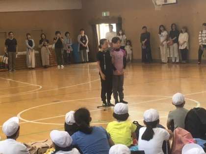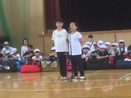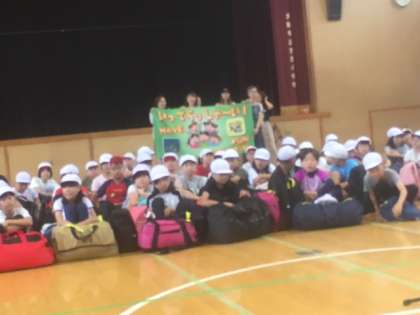 出発式では、朝早い出発で少し眠たそうな子もいましたが、参加者全員元気にバスに乗りこみました。