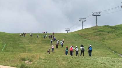 山登りの様子です。自分の力に合わせて登ります。別れ道は、鉢伏山か高丸山です。自信のある子は高い鉢伏山を目指します。たくさんの子が挑戦しました。(校長)