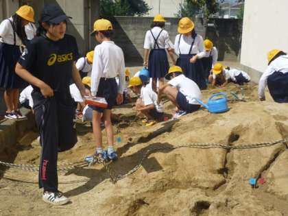 行ってみると、理科の「流れる水の働き」の実験中でした。