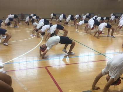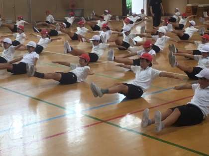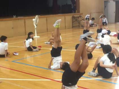 8月27日(火)5時間目、6年生が講堂で運動会の練習をしていました。ブリッジや倒立などの練習をしていました。はじめてする子もいたのですが、みんな思っていたよりも上手にできていました。これから運動会に向けて、本格的に練習が始まります。頑張ってくださいね。