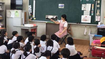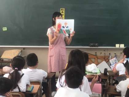 9月11日(水)、水曜日は読書タイムです。4年生には、絵本ばたけさんに来ていただき、本の読み聞かせをしてもらいました。