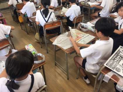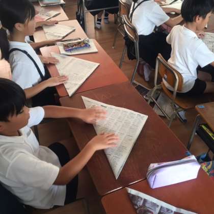 4年生は、防災学習です。地震がおきたときの様子や気を付けることを学習した後、新聞紙で食器づくりに挑戦しました。友達同士で協力しながら完成させることができました。
