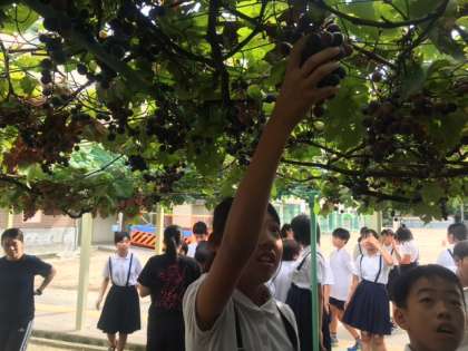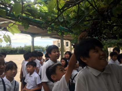豊里小学校では、「6年生」がブドウ狩りをするのが恒例となっています。