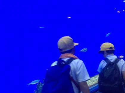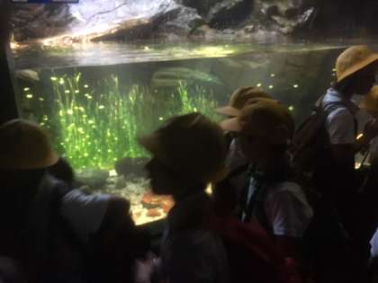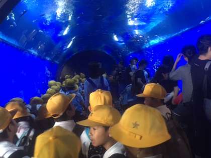 行きは、中央線で通勤ラッシュに会い、少し疲れた様子の児童でしたが、海遊館では、いろんな魚を見て、楽しく過ごすことができました。グループ活動で、魚に関することを調べながら、見学していきました。