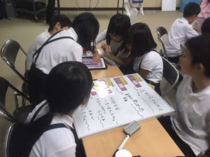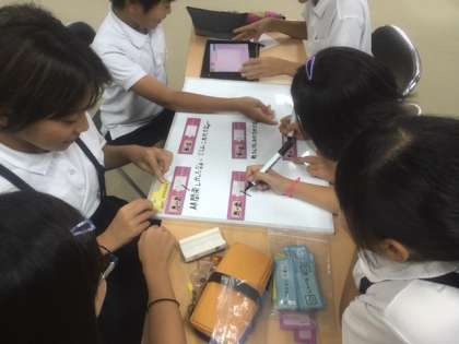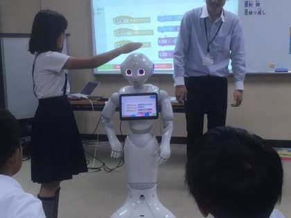 今日の5年生の学習は、タブレットを使ってペッパー君にお話をさせる活動でした。ペッパー君に命令を出すまでに、いろんな過程を踏まなくてはいけないのですが、児童たちは、グループで協力して取り組んでいました。