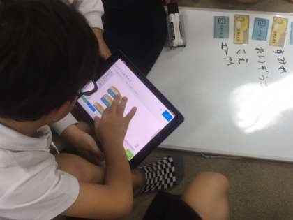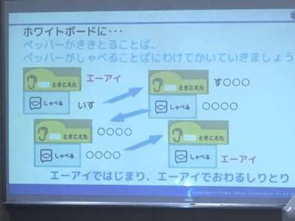 タブレットを使ってペッパー君としりとりをする活動でした。2年生なのにタブレットを上手に扱い、ペッパー君としりとりをしていました。