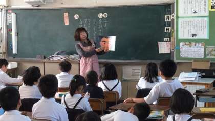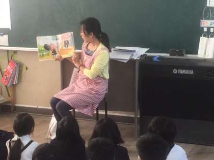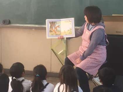 10月16日、水曜日は読書タイムです。今日は、絵本ばたけさんが、3年生に本の読み聞かせをしてくださいました。